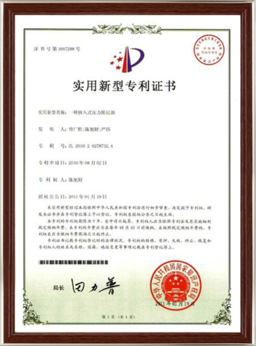 實(shí)用新型專利證書